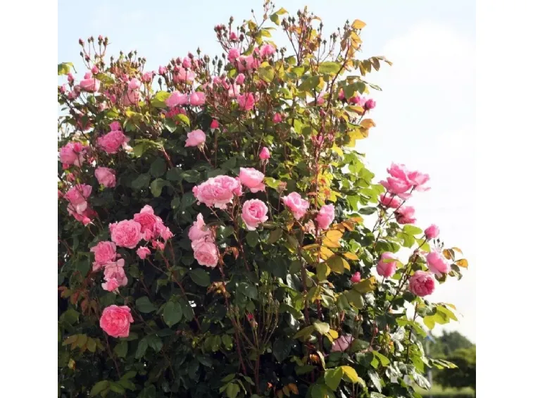 This elegant and nostalgic flower is densely double, quartered, with a 10 cm diameter, composed of over 40 pink petals with a darker reverse and an intense fragrance. It reblooms prolifically and is very healthy, growing up to 250 cm in height. The foliage is highly resistant to downy mildew and powdery mildew.