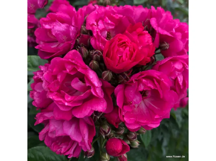 Perfumy Siluetta® Kordes Rosen Pleasantly fragrant climbing rose, with intense pink, small cluster flowers; reblooming and disease-resistant.