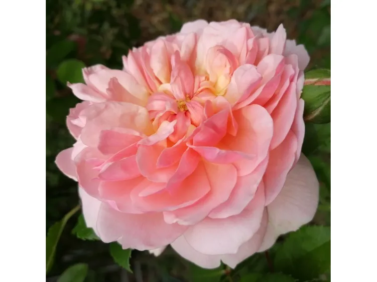 Medium-sized, flat rosette-shaped flower, 9 cm in diameter, composed of about 110 soft pink petals with a darker reverse. The flowers are borne in clusters and bloom continuously until late autumn.