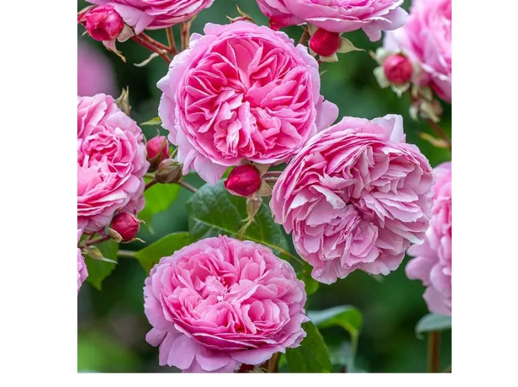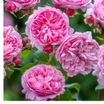The flowers are large, deeply cupped, and very full, about 9 cm in diameter, composed of around 100 petals that open pink and gradually mature to a lavender tone. The fragrance is moderate, with an old-rose character. It blooms in clusters of 3–5 flowers continuously throughout the season.