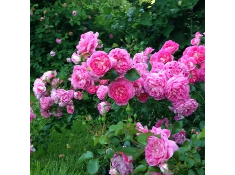 This charming ground-cover floribunda features small, very full flowers (with over 41 petals) in a cup shape, pink colored with a silvery reverse, and lightly fragrant. The flowers are arranged in clusters.