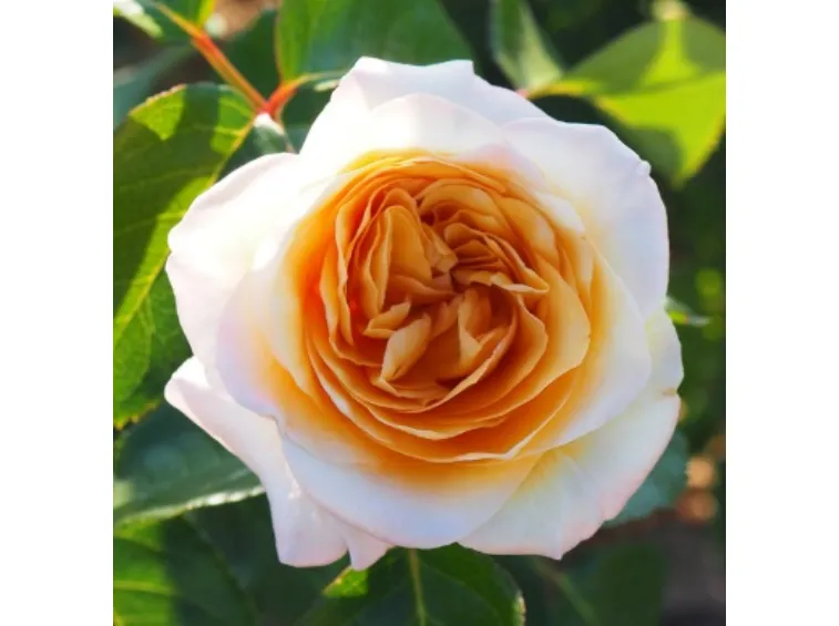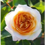 Romantic, large, and full double cup-shaped flowers, 12 cm in diameter, composed of 60 petals in caramel-coffee color at the center and lighter towards the outer edges. Slightly whirled with an intense fragrance featuring fruity and sandalwood notes. Recurrent, it grows up to 120 cm in height and 80 cm in width, showing good resistance to diseases. It has dark green foliage.