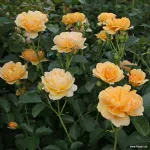 Spotlight® Kordes Romantic rose with golden-yellow flowers, reblooming, highly disease-resistant, and heat-tolerant.