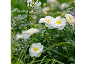 Meilland dedicated this rose to the Paris Observatory, one of the world's most ancient astronomical observatories and that can be found in the Montparnasse area, not too far from the magnificent Luxembourg Gardens, and the five-petalled shape of this flower really looks like a shining star! A delicate rose, with a light pink colour and white-cream shades, five petals that frame a bouquet of red stamens, very peculiar and ornamental. Up to 15 buds can be found on each stem and stand out from the very dense, glossy green foliage. A highly disease-resistant plant that grows bushy up to a height of 50-60 cm. Blooms repeatedly throughout the season until the first frost and is a perfect choice for terraces, balconies and borders. It has achieved several awards in Buenos Aires, The Hauge and Le Roeulx and it has also been nominated Rose of the Year in Bagatelle.