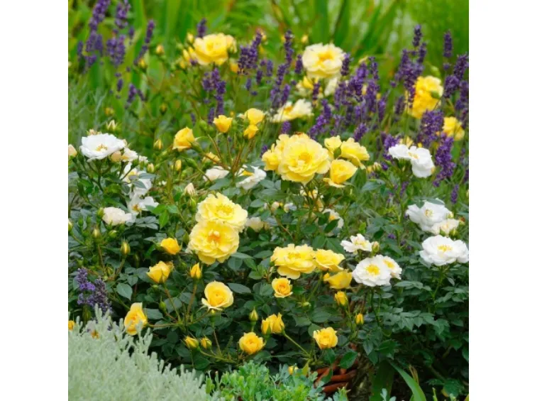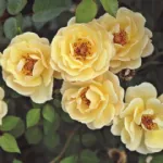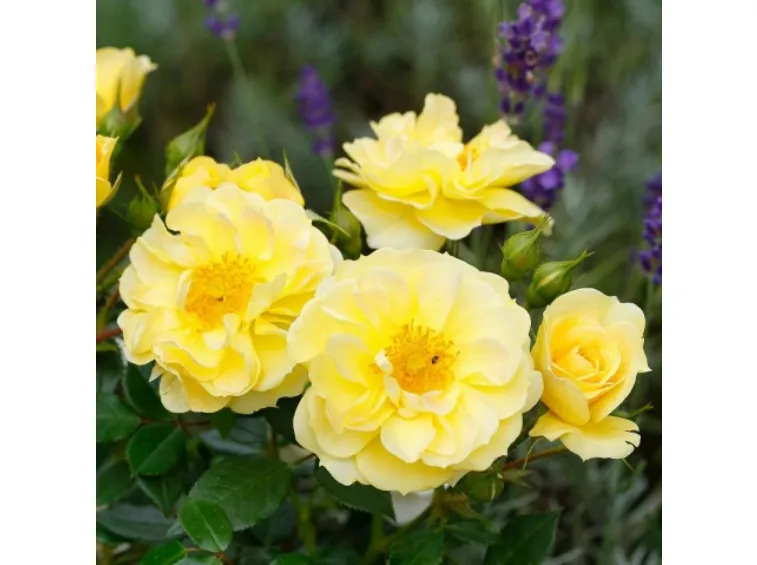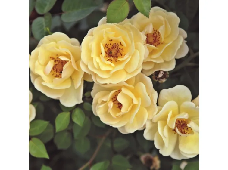Semi-double rosette flower, 3 cm in diameter, with golden yellow petals with pink hues depending on the temperature. It blooms in small clusters. The flowers are very appreciated by bees thanks to their abundant supply of easily accessible pollen. Very re-flowering and resistant to diseases, self-cleaning, it has a delicate and compact growth, the lowest rose of the Bienenweide® line, reaches 50 cm in height and 40 in width. Selected before 2007 but introduced only in 2013 by Rosen-Tantau, it won the Silver medal at the Baden-Baden rose competition in 2013 and received an Honorary Award from the German Ministry of Environment, Agriculture and Nature and NRW Consumer Protection for "particularly bee-friendly innovation in the rose range" in 2019.