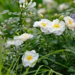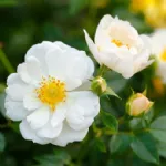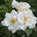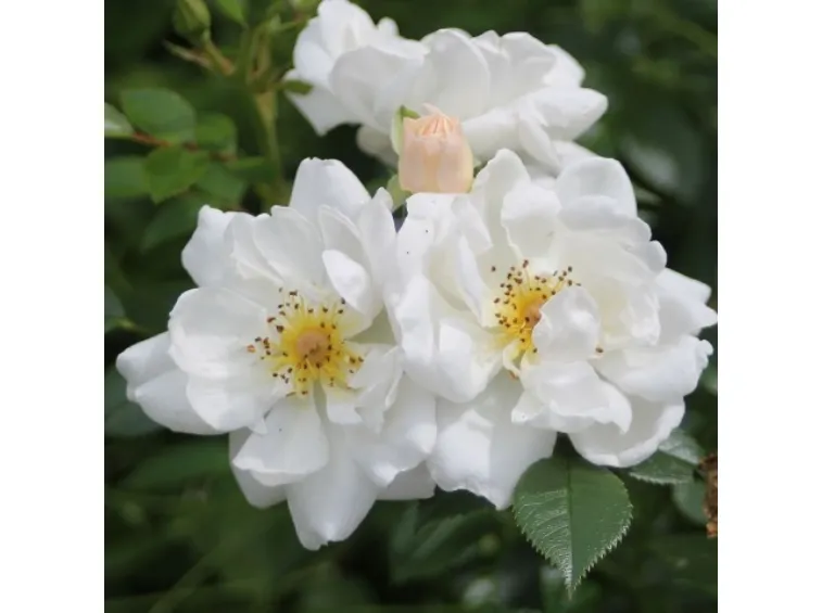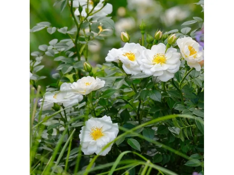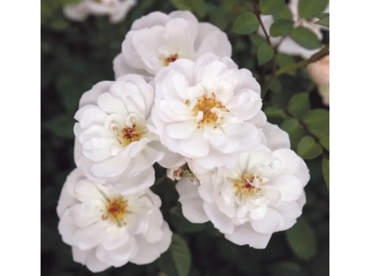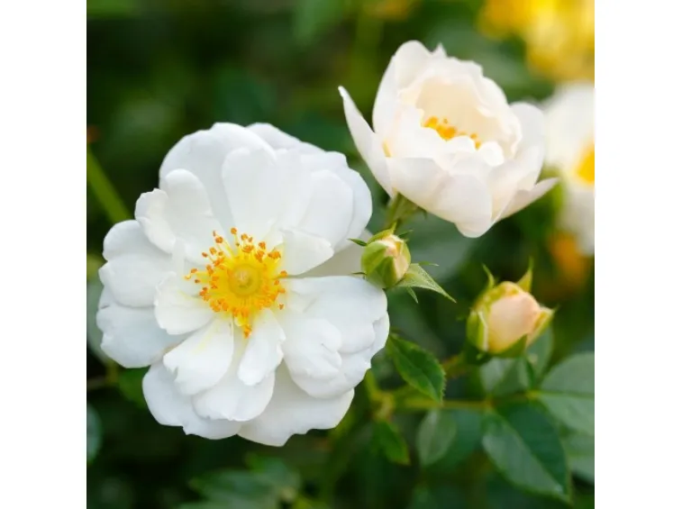 Semi-double, rosette-shaped flower, 4 cm in diameter, composed of 4-8 white petals with a yellow center. Compact growth, typical of patio roses, grows up to 50cm in height and is very disease resistant. The flowers are highly appreciated by bees thanks to their abundant supply of easily accessible pollen. Introduced in 2015 by Rosen-Tantau, it received the Honorary Award of the German Ministry of Environment, Agriculture, Nature and Consumer Protection NRW for "particularly bee-friendly innovation in the rose range" in 2019.